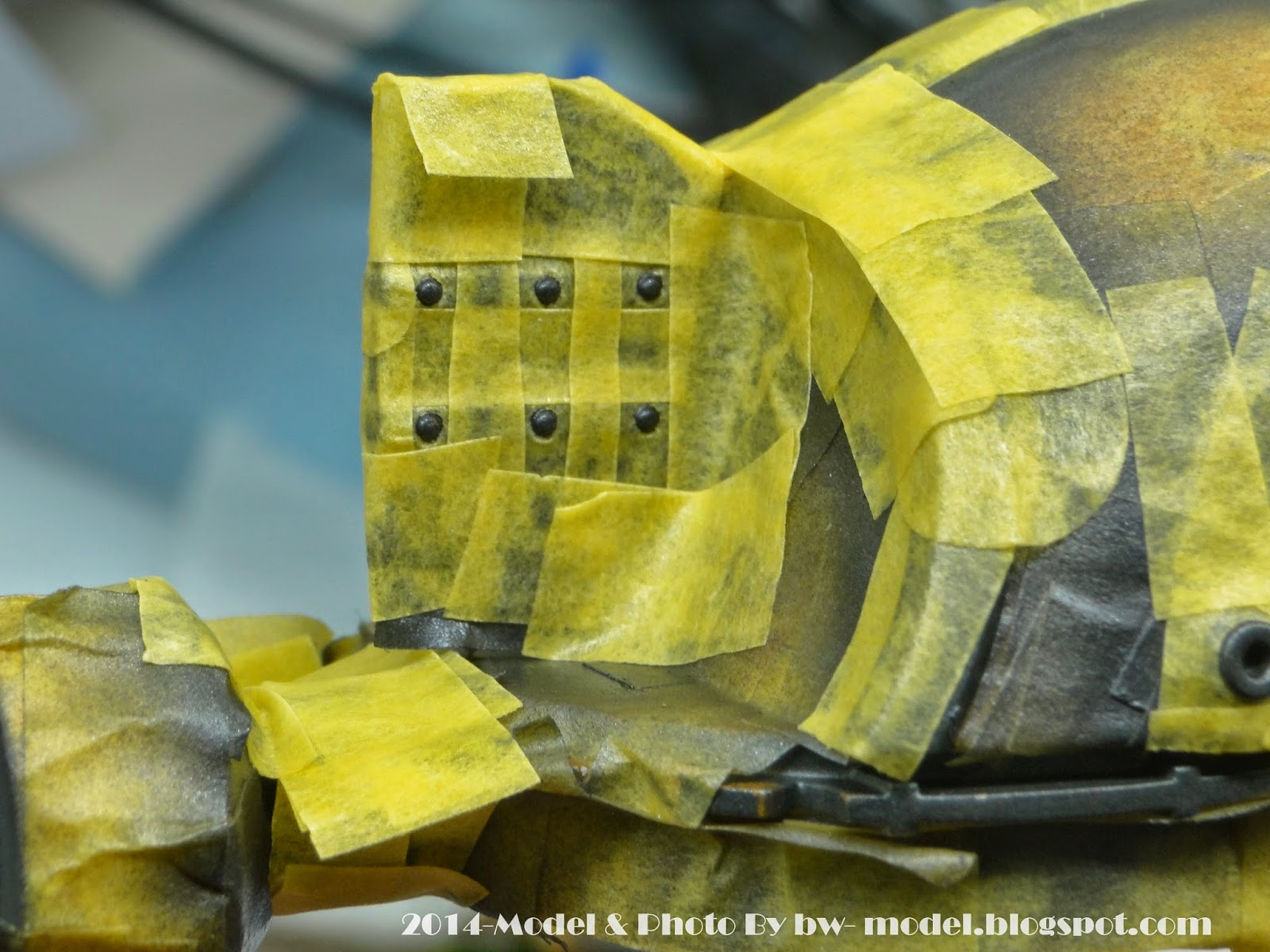 船身先噴上鵝黃->淺咖啡..作為木底再噴上鐵灰感的金屬邊條 |