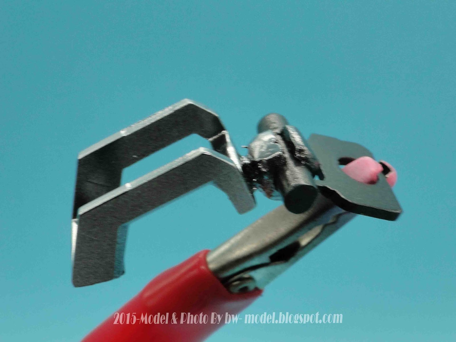 圖左方為肩上可動部分(這零件會多一個)切除前端再粘上一個切開的軟膠零件
