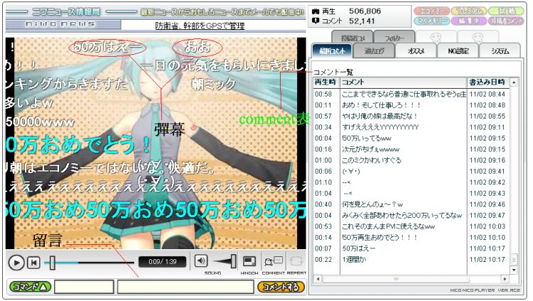 NICO眾稱這些COMMENTS為「彈幕」