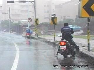 連停車場的摩托車都被吹的東倒西歪,不過台中縣市上午都還是必須上班上課,民眾氣得大罵。
