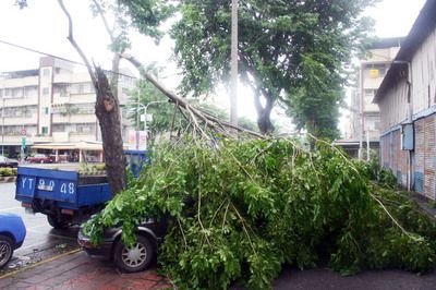 柯羅莎還沒發威時,台中市街頭就已經感受它的威力,路樹被強風吹得攔腰折斷,壓毀停在路邊的車輛,大型招牌搖搖欲墜,甚至在半空中到處亂飛,相當驚險。