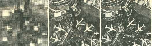 照相偵察衛星的圖像,實際上和我們平時用照相機拍照所得到的照片沒有什麼區別,它是由許多肉眼看不見的像點組成,類似於我們通常所說的數碼相機的像素,像點越小,照相可辨認的細節的尺寸越小。