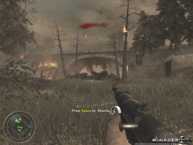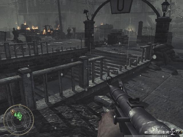 一開頭,主角是在一個圓型噴水池裡,周圍都是屍體,然後德軍對著屍體補槍,接著人走掉,然後往前爬沒兩下,有人出聲叫住你(這邊大家一定都很熟)