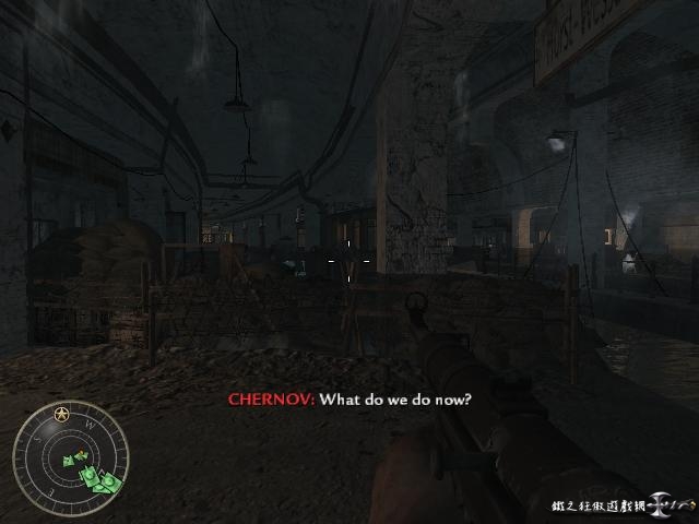 先是往前走,可以看見幾個講話中的德軍軍官,清掉後繼續向前。會看見兩個德軍正要殺友軍,救了她之後就是一場大戰。然後一路戰鬥到大街上跟我方坦克會合。要進地下鐵前會看見3個德軍被我方士兵團團包圍,請痛下殺手吧(不動手,時間到了周圍的士兵照樣丟雞尾酒下去)進入地下鐵之後,請挑一邊走。