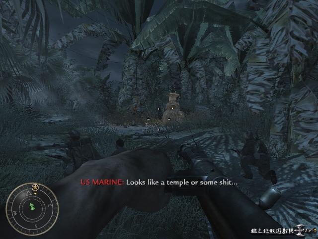 緊接著會接到炸掉彈藥庫的任務,沿著溪邊往上走,會先看見地板一堆日本軍的屍體