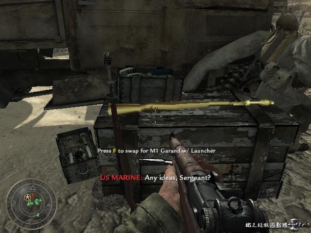 開頭右手邊箱子上有M1步槍跟日軍的百式衝鋒槍,換上後就往前衝吧!前面幾間屋子都很好打,直到最後面看見卡車那邊時才會碰到第一個機槍點