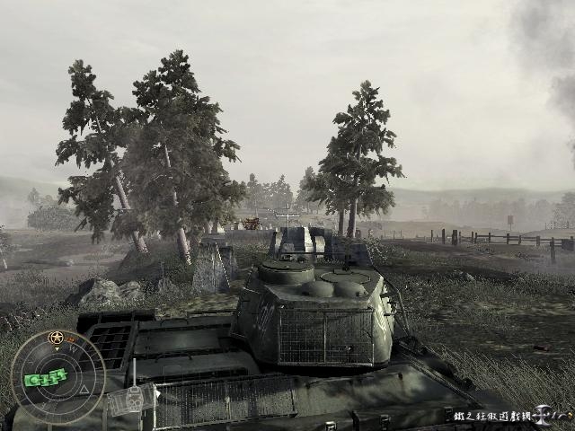 ,與友軍裝甲部隊會合,跟著隊友,不要跟著坦克……推進一段後,遇見三輛敵軍坦克,壕溝裡有火箭筒
