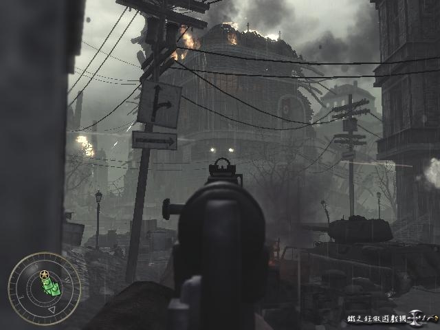 前方會有大批德軍,這時候跟著戰車往前走就是了。唯一要注意的就是,對面建築物的機槍手跟右手邊屋內的反坦克手。