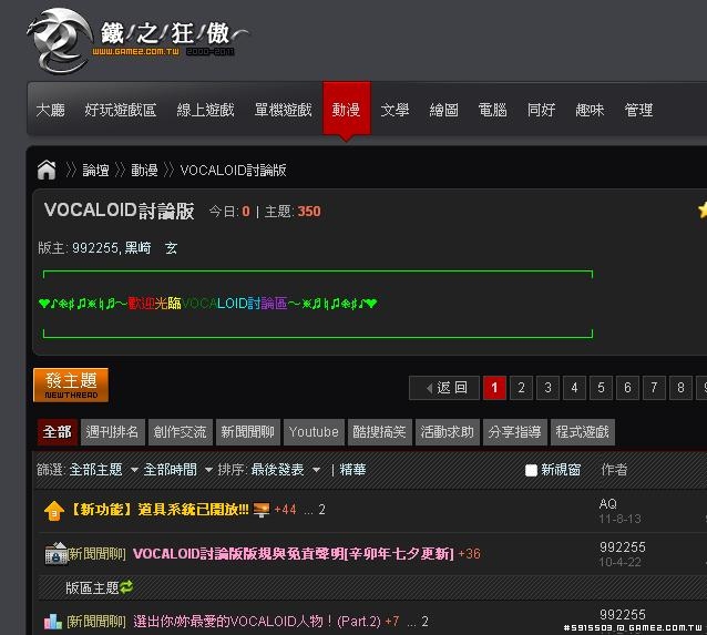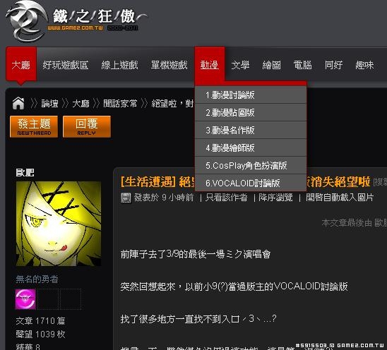 突然回想起來,以前小9(?)當過版主的VOCALOID討論版