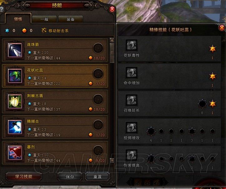 首先就是連珠箭,對於移動玉狐來說,在輸出期間,至少有一半以上的時間實在用連珠箭,理論上上來說到了45級是可以點到11級的連珠的,但是我只點了10點,應為10和11差距不是很大,我更願意吧這一點給最後的45級大招射天凰。很多人說為什麼不把靈巧射擊精修滿,反而點了連射增攻?我是根據實驗得出的。。打boss的時候除了連珠,就是射天凰,其他主動攻擊技能基本用不到,所以呢靈巧攻擊的減cd也就是為了射天凰服務的,但是,射天凰的cd是60秒,也就是說就算我們每2次攻擊一次減1秒cd(滿級靈巧是45%),假設我們是每秒射出2箭,好了,這樣至少要15秒,也就是說我們共射出了30劍,到了這裡你們就知道了,疾風效果來了,直接冷卻了所有射擊系技能,所以我只能說靈巧攻擊鷄肋了。這里加兩點只為了加點攻擊力。。