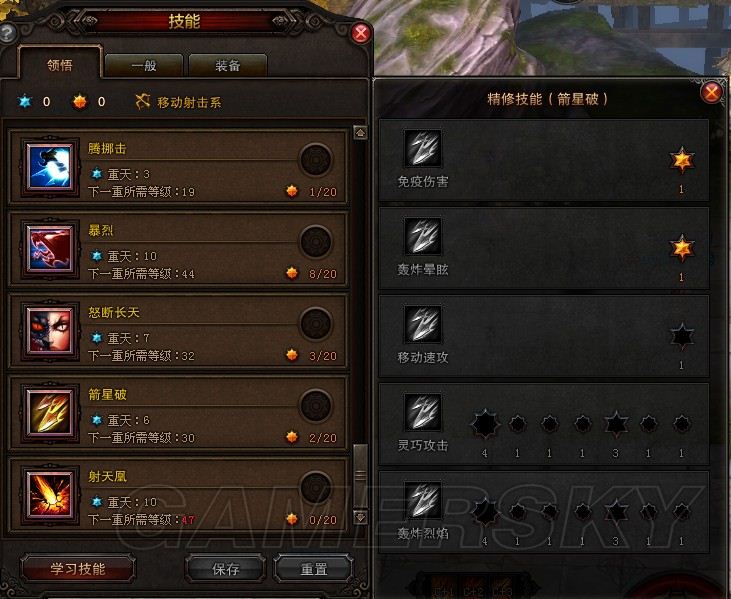 劍星破,基本就是用來炸小怪的。。還有就是免疫傷害來躲避技能,點出了暈眩就不點了。不得不說下,騰挪和箭星我都沒點移動速攻,應為我認為,疊速攻buff的話連珠完全夠了,我就不浪費技能點了。