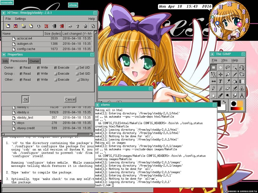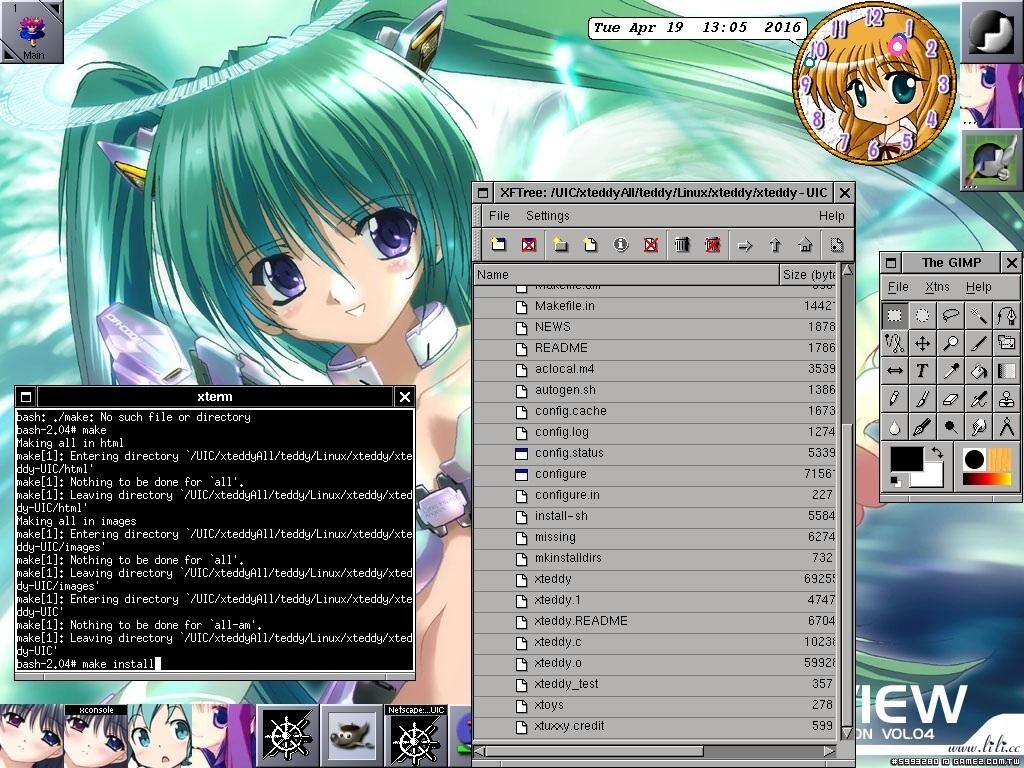 = = = = = = = = = = = = = = = = = = = = = = = = = = = = = = = = = 2 = = = = = = = = = = = = = = = = = = = = = = = = = = = = = = = = = = = = = = = = = = = = = = = = = = = = = = = = = = = = = =  201604192-2a-SuSE_Linux_7P-windowmaker-GIMP-thCOM-UIC.jpg Save As can be used to replace the original cover image, Such an action would not change the source code and want to spend to achieve the picture, And then compile the new configuration, with the following terminal command: We must first change the working directory cd path, for example, cd /UIC/xteddyAll/teddy/Linux/xteddy-UIC Available command pwd can know the current working directory, Too lazy to hit the path there is a coup, netscape available after entering the directory, Press the left mouse button Highlight path, After selecting the mouse to move to the back of the terminal on the cd, Press the Middle mouse button you can highlight the text to paste. This move is not only fast but also very easy to use without error. To set the file permissions to configure Executive authority, terminal command: chmod +x configure Then set the configuration terminal command: ./configure