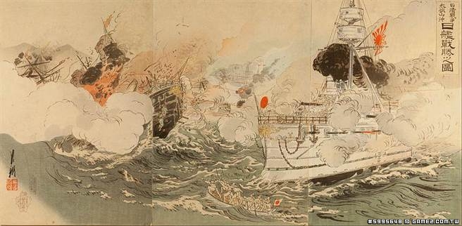 日本方面對日海軍在黃海海戰勝利的浮世繪。(圖/Frost Art Museum藏)