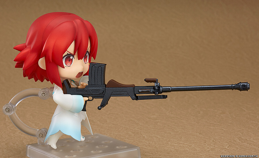 出自超人氣TV動畫『終末的伊澤塔』,主角「伊澤塔」身穿白色魔女裝黏土人化!內附黏土人系列中最大規格的「反坦克步槍」,除了可手持之外,也能重現跨坐在槍上飛行的模樣。此外,還附「劍」與「槍」各4把,能再現劇中的各種戰鬥場景。表情零件備有溫柔的「笑臉」與攻擊時的「英勇臉」,依照喜好搭配把玩吧!