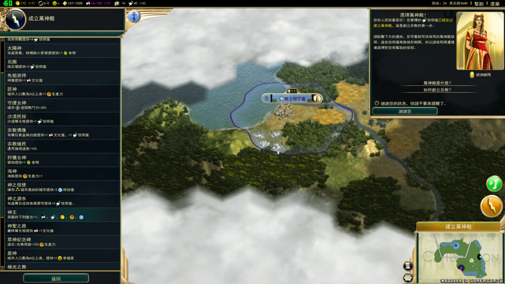首先你必須要有信仰值才能創立宗教,獲得方式建築與萬神殿的加乘。