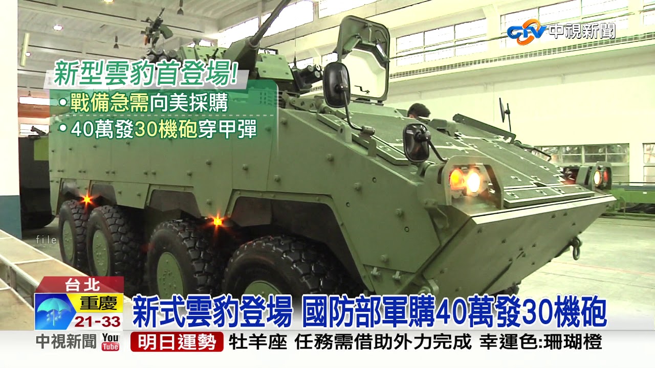 國防部軍備局長房茂宏表示,4輛國產30公厘鏈砲型雲豹甲車已在19日完成戰術驗證測評,主測項目全數合格,次要項目僅2項不合格,已決定量產284輛。國軍現有的378輛40公厘榴彈機槍車型的8輪甲車完成量產後,軍方啟動30公厘鏈砲型雲豹甲車的生產作業,並在年內少量生產4輛進行作戰評估。