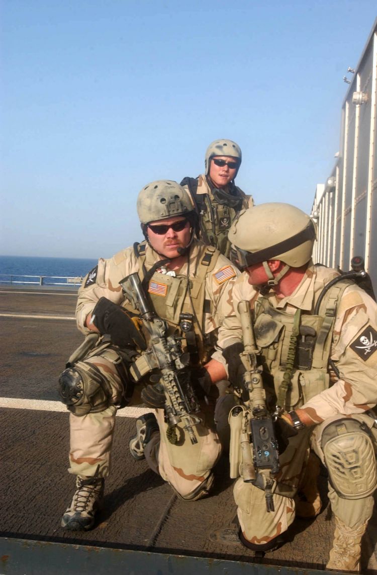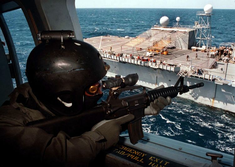 在海灣戰爭時,海豹部隊在地面戰爭未開始前便在科威特海岸邊巡遊,以監視伊拉克防衛部隊。伊拉克從未察覺海豹部隊的存在,他們的報告使盟軍指揮官相信一項兩棲突襲登陸可能會極具危險性——但卻值得嘗試,因可使海珊相信海軍陸戰隊仍然試圖登陸。在1991年2月23至24日晚間,6名海豹小組靜靜劃至岸邊,他們以快艇上的機關鎗掃射伊拉克防衛部隊先前設置的炸藥。伊拉克部隊向黑暗中盲目地開火,當海岸因一連串的爆炸而震動時,他們早已潛入水中。當海豹部隊悄悄的登陸交戰;同時盟軍則以裝甲部隊開始攻破伊拉克南方的防線。這是一次優秀的牽制的人員如何達到與其極少的數目完全不成比例的結果。