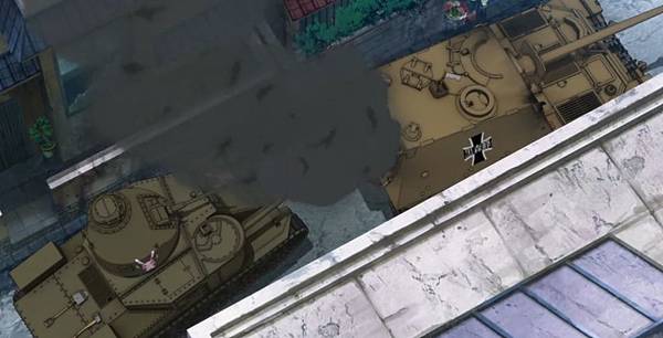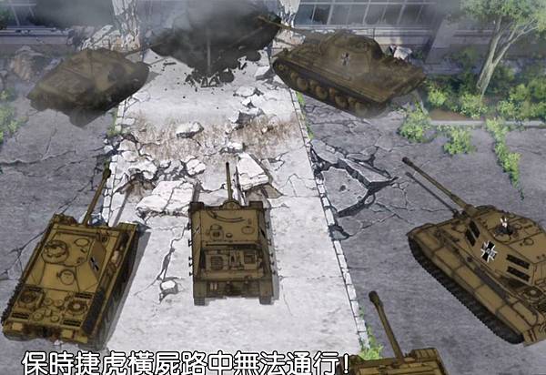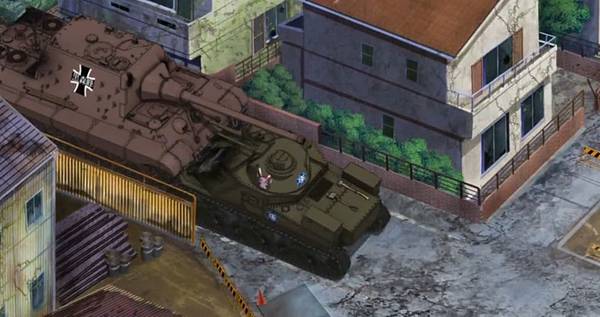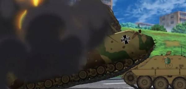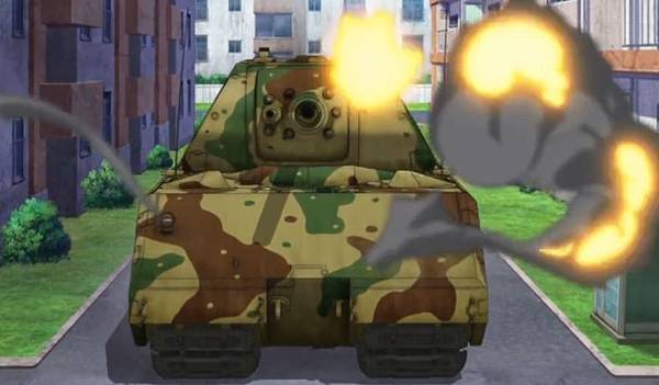 第十一集後半段出現的超重量坦克鼠式,動畫中以很別出心裁的方式解決掉: