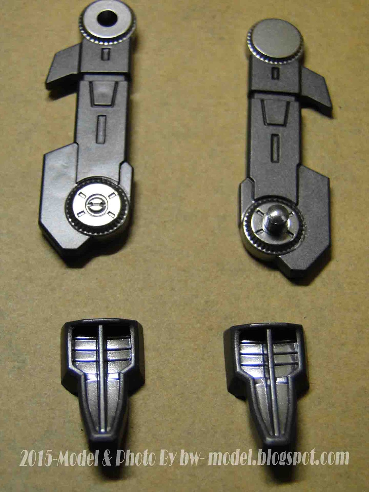 圖左方為肩上可動部分(這零件會多一個)切除前端再粘上一個切開的軟膠零件